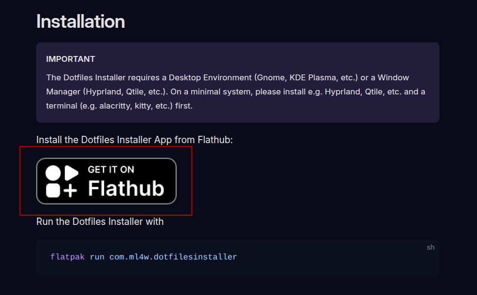flatpak install flathub com.ml4w.dotfilesinstaller